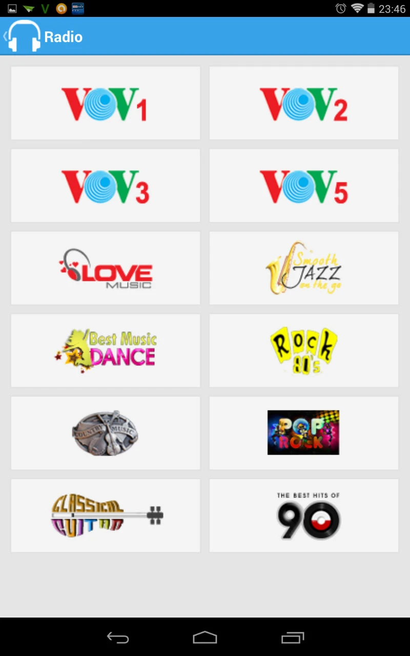 - Radio: bao gồm 10-12 kênh khác nhau như VOV1, VOV3, Best Music Dance, Rock. Hiện tại tính năng nghe nhạc (Music) có số lượng bài hát khá ít, chưa cho phép tìm kiếm nhạc trực tuyến, hy vọng nó sẽ được cải thiện trong những phiên bản sau.