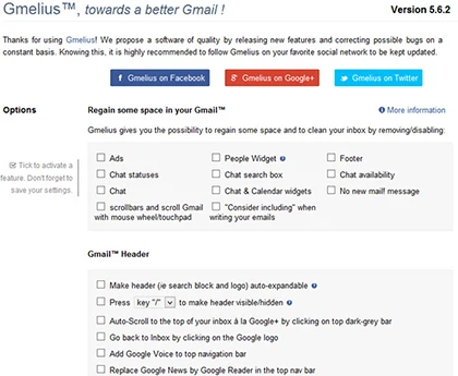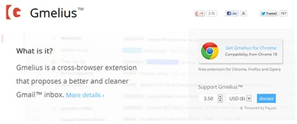 Các mẩu quảng cáo trong Gmail tuy không chiếm quá nhiều không gian như hộp thư của Yahoo, nhưng nó có thể gây phân tâm hoặc là một mối phiền toái nhỏ đối với người dùng. Gmelius là một thành phần mở rộng có sẵn cho Firefox, Google Chrome và Opera, cho phép người dùng tùy biến và loại bỏ quảng cáo dễ dàng, đem đến một giao diện duyệt mail thoáng đãng hơn.
