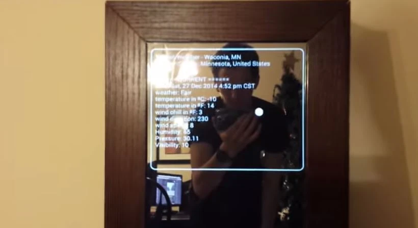 Nick Nothom, một chàng trai đam mê công nghệ đã thực hiện điều này trên chính chiếc gương của anh. Điểm thú vị chính là việc kết nối chiếc gương với smartphone để có thể đưa ra tương tác hệt như smartwatch dựa trên hệ điều hành Android Wear.