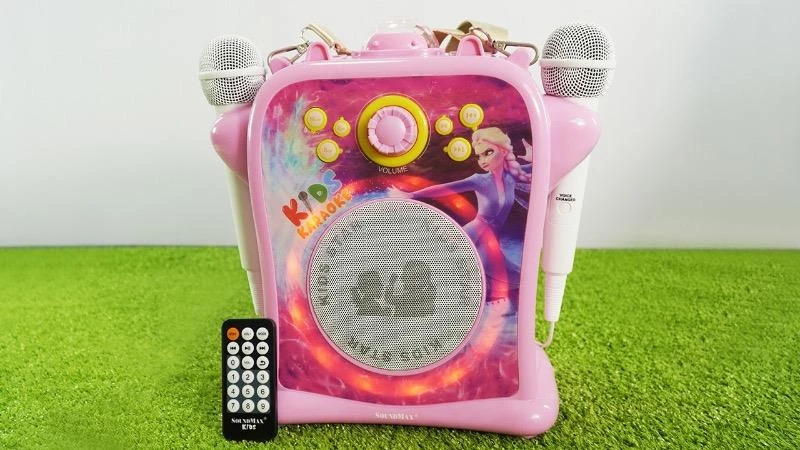 Sản phẩm có kích thước chỉ bằng một chiếc ba lô, hỗ trợ đến 2 micro, cho phép con bạn thỏa sức thể hiện những bài hát yêu thích, đi kèm theo đó là cụm đèn LED đa sắc màu.