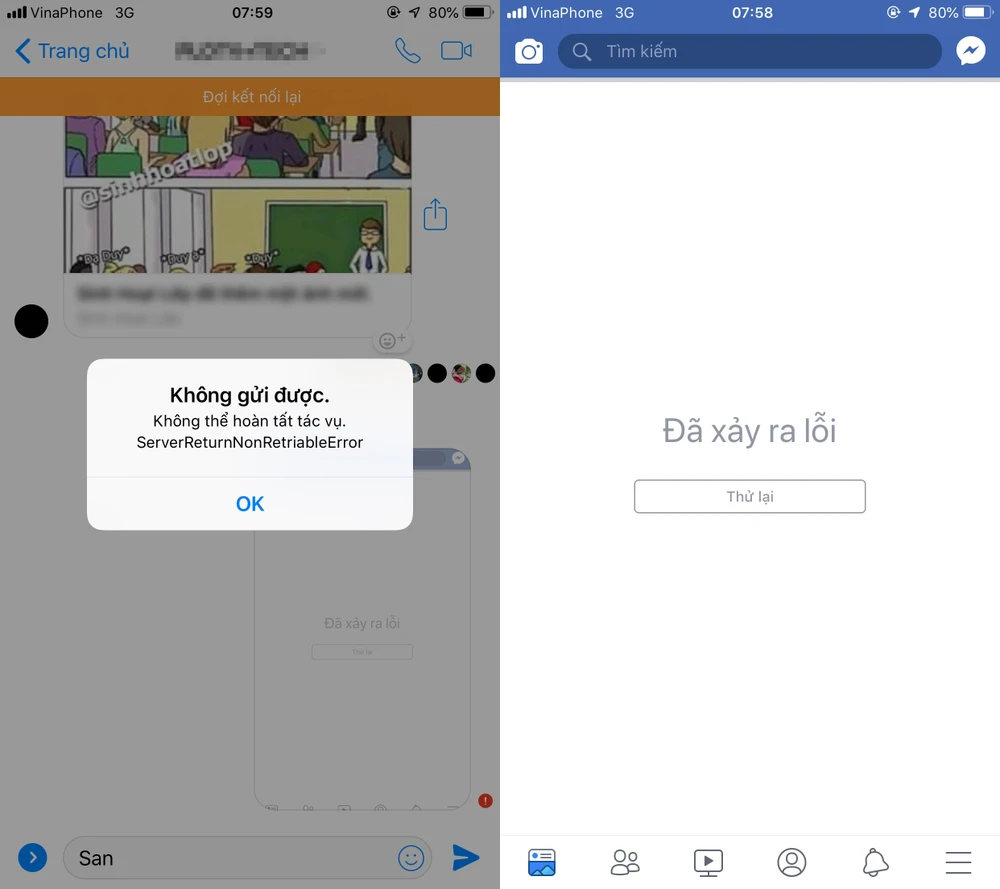Tương tự, cả Facebook cũng gặp sự cố không thể truy cập và không gửi được hình ảnh qua Messenger.