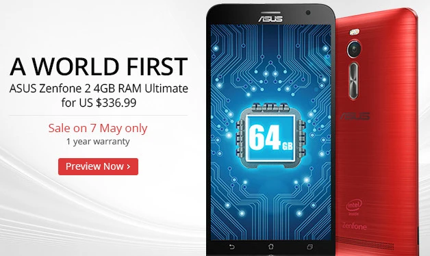 Tuy nhiên, mới đây trên trang bán hàng trực tuyến AliExpress đã bắt đầu chuẩn bị cho cuộc giảm giá kịch sàn và sản phẩm chỉ bán trong vòng 1 ngày duy nhất (07/05 tới đây). Đó chính là chiếc Zenfone 2 ZE551ML, màn hình 5 inch và 5,5 inch, RAM 4GB, bộ nhớ trong 64GB. Giá được giảm chỉ còn 337 USD (khoảng 7,7 triệu đồng), rẻ hơn 112 USD (khoảng 2,3 triệu đồng) so với giá gốc.