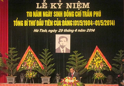 Ông Nguyễn Thanh Bình, Bí thư Tỉnh ủy Hà Tĩnh đã đọc diễn văn ôn lại thân thế, sự nghiệp cách mạng vẻ vang của Cố Tổng Bí thư Trần Phú