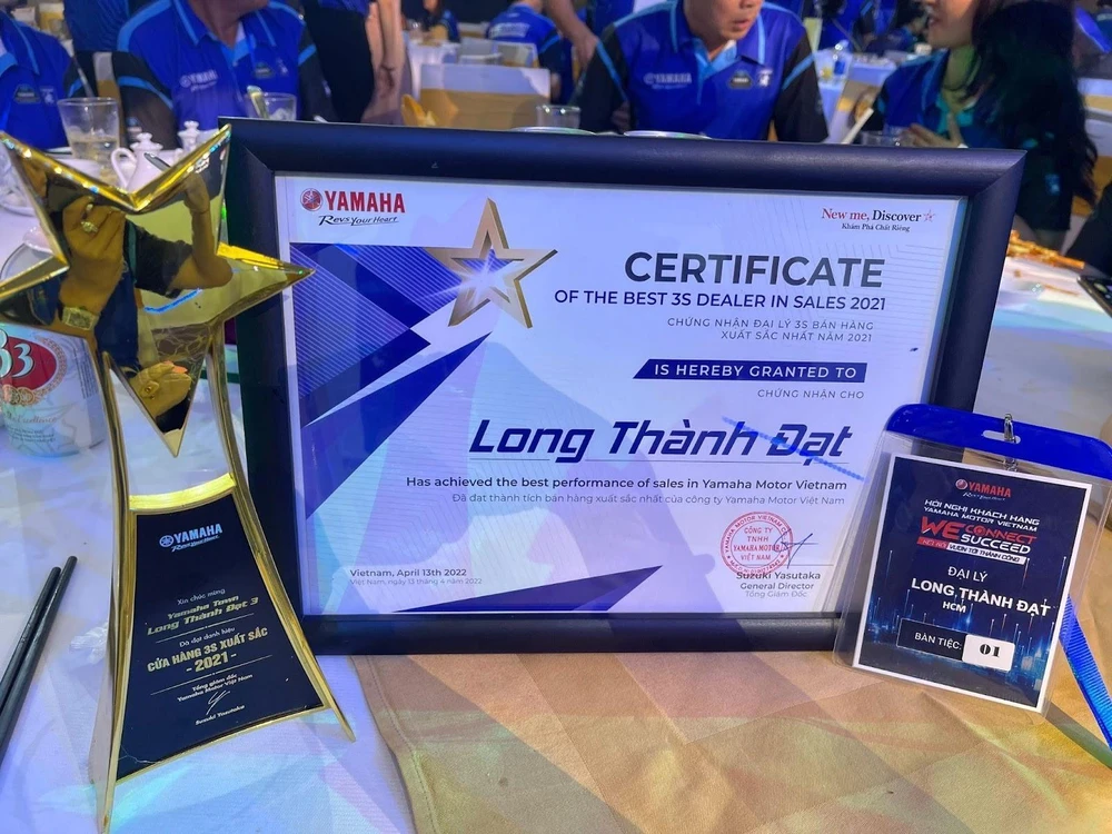 2022: Nhận danh hiệu đại lý xuất sắc nhất cả nước của Yamaha Motor VN