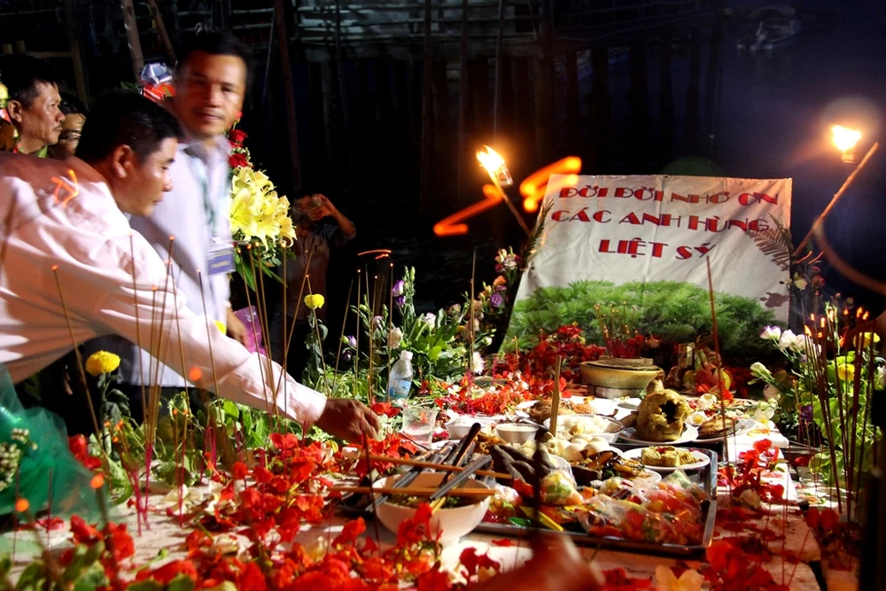 Kết thúc cuộc gặp, như thường lệ, các CCB cùng đông đảo người dân đã bùi ngùi thả vòng hoa tươi xuống biển tri ân các anh hùng liệt sĩ đã anh dũng hy sinh tại Trường Sa, trong đó có 64 liệt sĩ hy sinh tại đảo Gạc Ma tháng 3-1988.