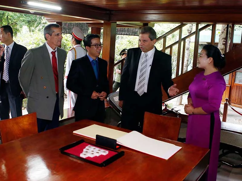 Đoàn đại biểu Đảng Cộng sản Cuba do ông Victor Gaute López, Bí thư Trung ương Đảng, Trưởng ban Tuyên huấn Trung ương Đảng Cộng sản Cuba, trong một lần đến thăm Khu di tích Chủ tịch Hồ Chí Minh tại Phủ Chủ tịch năm 2019.Ảnh: TTXVN