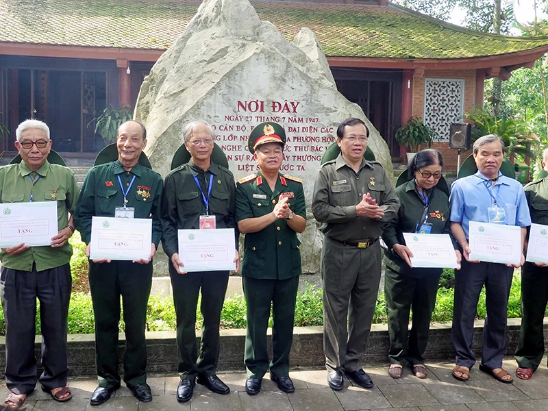 Phó Chủ tịch Quốc hội Đỗ Bá Tỵ tặng quà cho Hội Cựu thanh niên xung phong sáu tỉnh vùng Việt Bắc. Ảnh: TTXVN