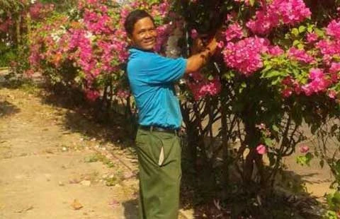 Làm cho vườn cây ở Vườn quốc gia Yok Đôn lúc nào cũng tươi xanh không chỉ là trách nhiệm mà còn là niềm hạnh phúc của anh Y Danh Niê. Ảnh: THU HOÀNG