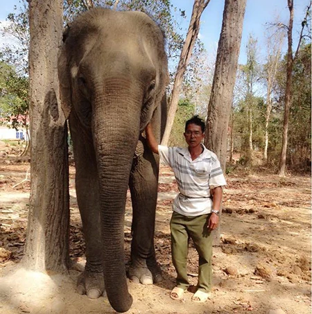 Y Mưh Byă bên voi Bun Khăm mà anh chăm sóc 19 năm nay.