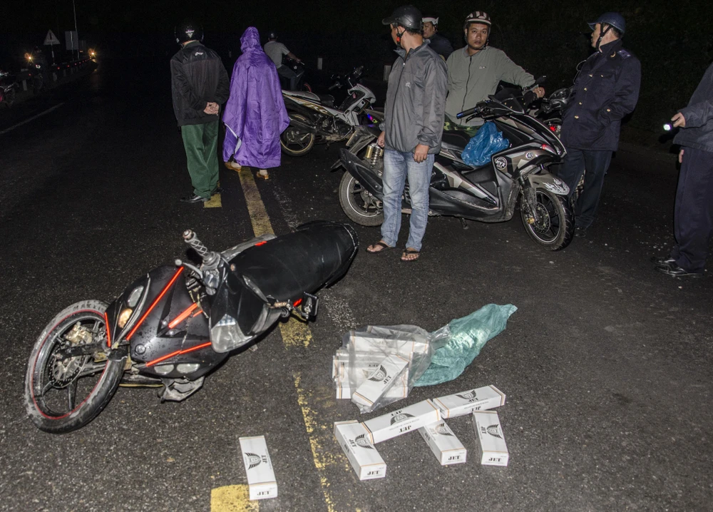 Đối tượng nghi vấn vận chuyển ma túy ném xe bỏ chạy, để lại thuốc lá Jet. Ảnh: LÊ VĂN CHƯƠNG