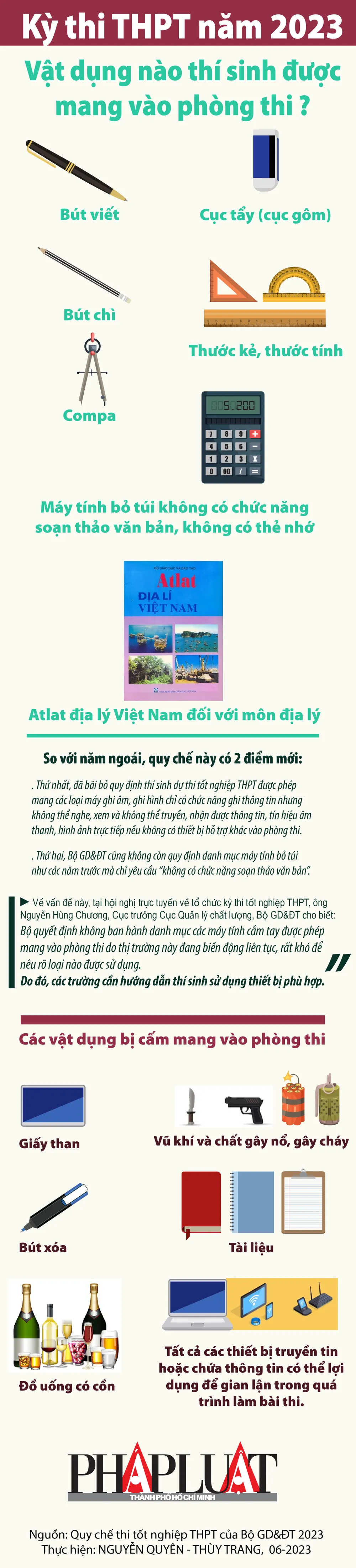 Quy chế thi tốt nghiệp THPT của Bộ GD&ĐT năm nay quy định rõ những vật dụng thí sinh được phép mang vào phòng thi.
