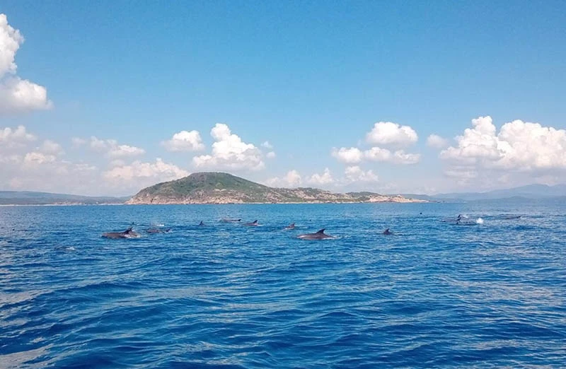 Theo anh Nguyễn Hoàng Minh Nhã (ngụ TP Tuy Hòa, Phú Yên), sáng 13-9, anh cùng nhóm bạn bảy người thuê một chiếc tàu du lịch để đi ngắm cảnh, câu cá trên vùng biển gần đảo Lao Mái Nhà thuộc xã An Hòa Hải thì bất ngờ gặp đàn cá heo trên.