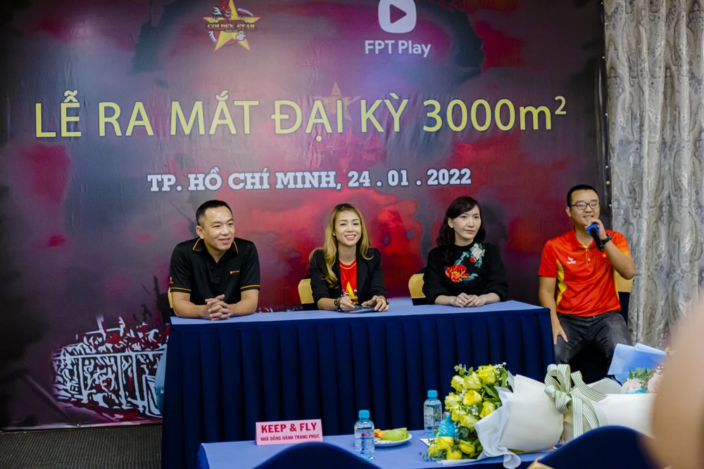 Đại kỳ mới của VGS trải vừa một sân bóng cỏ nhân tạo và theo chị Hoàng Yến, nó phủ kín khán đài D của sân Mỹ Đình. Lá cờ khổng lồ nặng 450 kg, gần chục người khiêng sẽ lên xe của các thành viên VGS xuất phát từ TP.HCM và lưu dấu ấn tại 11 tỉnh, thành, ba ngày sau mới đến sân vận động quốc gia.