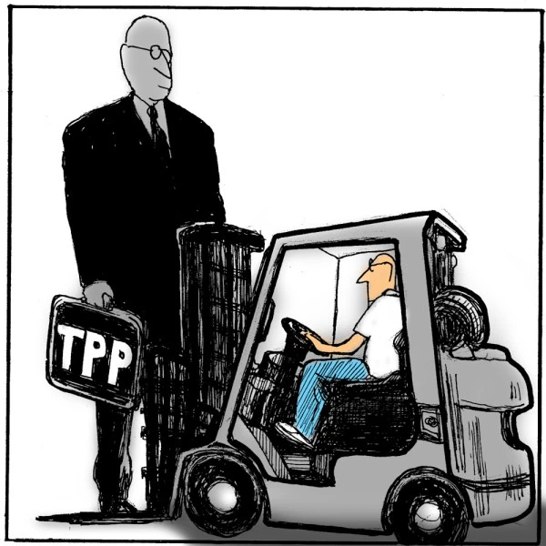 Lao động ít kỹ năng ở Mỹ có nguy cơ mất việc làm vì TPP. (Biếm họa: BANGOR DAILY NEWS)
