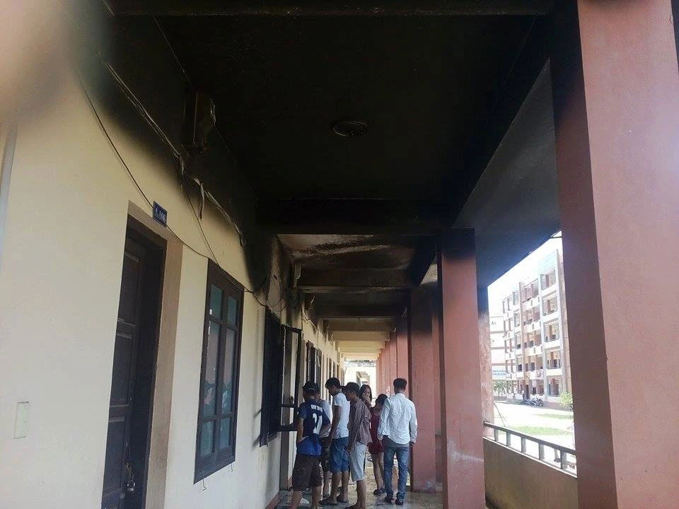 Sinh viên Nguyễn Thị Thùy Trang ở phòng A105 của KTX cho biết: “Tôi nghe thấy tiếng nổ và nghe những mảnh vỡ rơi xuống nên ra xem thì thấy phòng chứa đồ đạc của sinh viên có khói bốc lên và bốc cháy nên đã tri hô mọi người tháo chạy và báo cho bảo vệ và ban quản lý”.