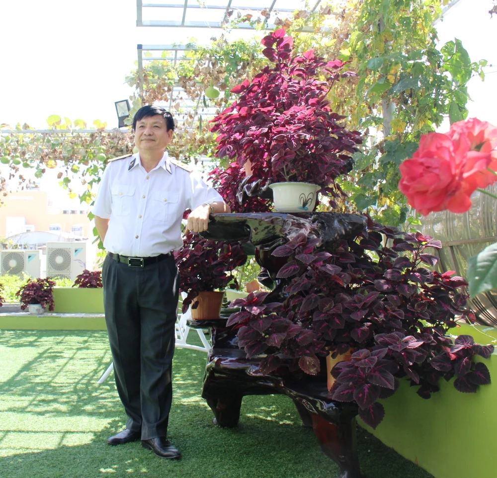 Ông Nguyễn Xuân Thùy tại vườn cây trái trên tầng 7 nhà riêng của ông ở Nha Trang.