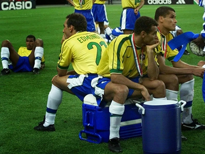 Ronaldo và các cầu thủ Brazil buồn bã sau khi thua Pháp ở trận chung kết.