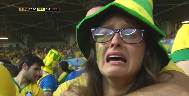 Brazil được xem là đất nước cuồng bóng đá thuộc hàng nhất thế giới, họ lại là chủ giải nên sự kỳ vọng của người hâm mộ lại càng lớn. Sức ép vô hình cùng với các yếu tố bất lợi khác đã khiến họ gục ngã đầy cay đắng. Hình ảnh các CĐV Brazil ôm đầu, gục mặt, khóc như mưa chỉ sau 30 phút trận bán kết gặp Đức đã khiến cả thế giới ám ảnh.