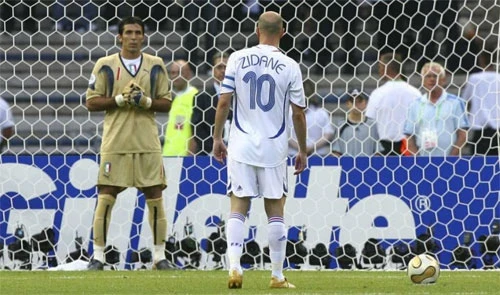 Zidane ghi bàn vào lưới Buffon trên chấm 11 m.