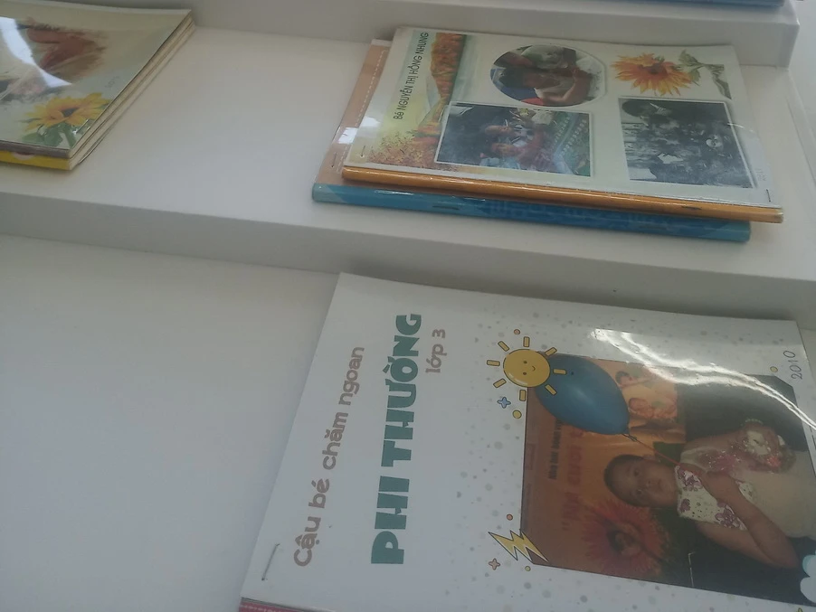 Nhưng đây chỉ mới là lần đầu tiên tôi nhìn thấy những con chữ kỷ vật của các em được nâng niu trên giá sách. Nghe chuyện cô Phấn có tấm lòng vàng nhiều lần tự mình lặn lội về tận nhà học trò để trao trả lại cho gia đình các em sống mũi tôi cay cay.