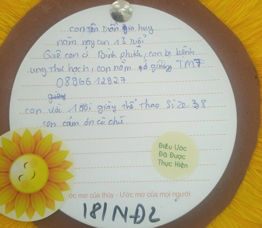 Tôi đã thấy nhiều đóa hoa xinh xắn ghi dòng chữ nắn nót “Con ước có một đôi giày đá bóng size 38”; “Con ước có một chiếc xe đạp màu đỏ”, “Con ước có một cây đàn ghi-ta”… những ước mơ rất hồn nhiên và quá đỗi bình thường với các cô cậu bé tuổi chưa quá 15.