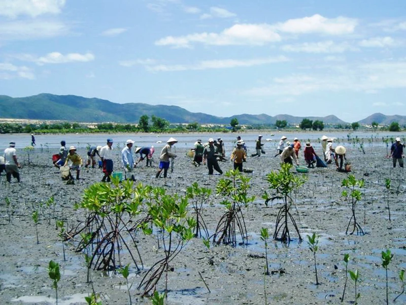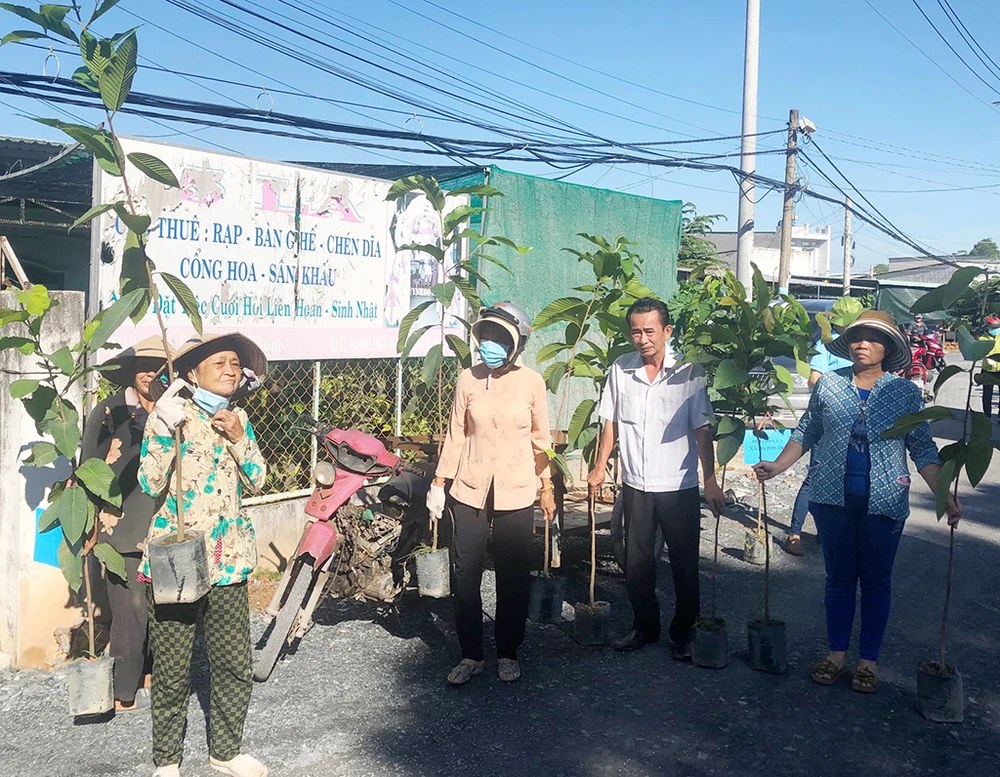 Người dân xã Đa Phước, huyện Bình Chánh, TP.HCM tham gia trồng cây dọc các tuyến đường nhằm cải thiện môi trường sống