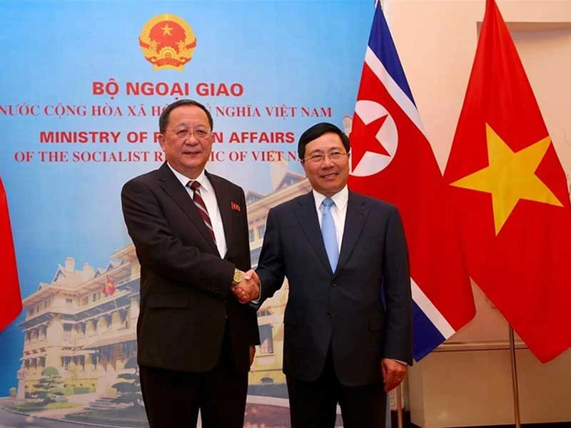 Phó Thủ tướng, Bộ trưởng Ngoại giao VN Phạm Bình Minh (phải) và Bộ trưởng Ngoại giao Triều Tiên Ri Yong Ho cuối tháng 11-2018. Ảnh: MOFA