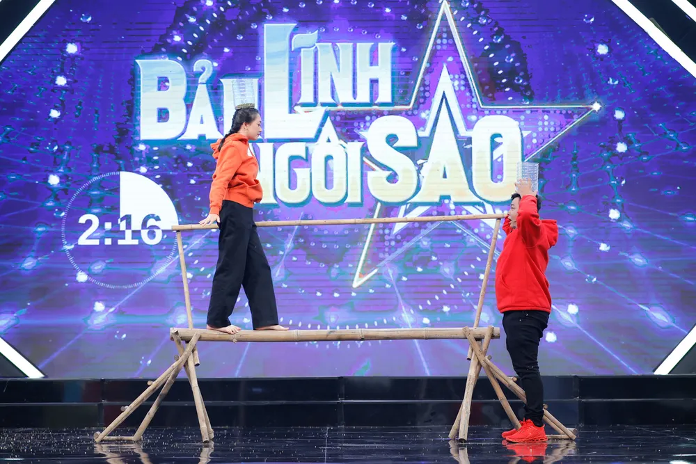 Mở màn, Bảo Bảo đã nhanh chóng hạ gục Tống Hạo Thiên đập nát liên tục sáu cái bong bóng, diễn viên Gái già lắm chiêu Phương Lan khàn giọng truyền tin cho đồng đội.