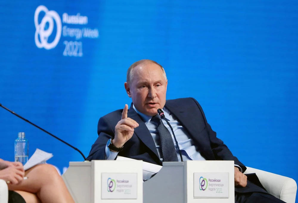 Tổng thống Nga Vladimir Putin phát biểu tại diễn đàn “Tuần lễ năng lượng Nga” lần thứ IV hồi tháng 10-2021. Ảnh: REUTERS