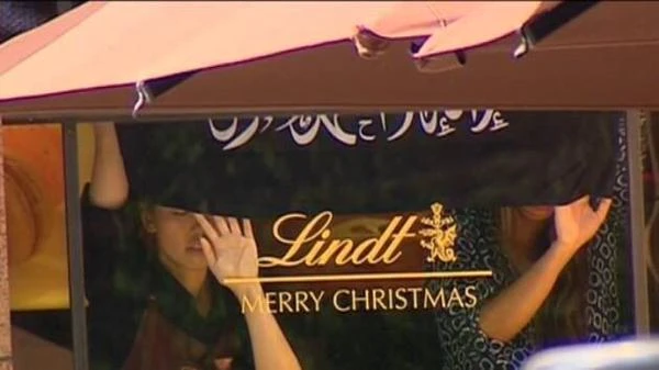 Lá cờ được con tin tại Sydney giơ lên trước cửa sổ tiệm cà phê