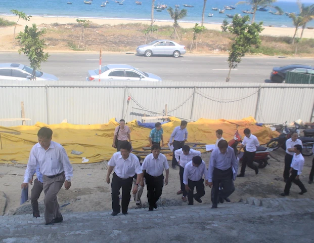 Chiều nay, ông Võ Công Trí, Phó Bí thư Thường trực Thành ủy Đà Nẵng; ông Đặng Việt Dũng, Phó Chủ tịch UBND TP Đà Nẵng, cùng các đơn vị liên quan đã đến thị sát, kiểm tra, đốc thúc công trình nhà trưng bày Hoàng Sa đang được xây dựng tại quận Sơn Trà.