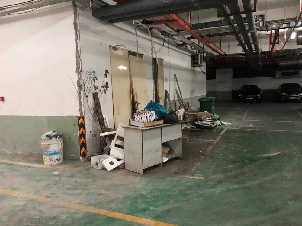 Rác đổ đống nhếch nhác trong hầm đậu xe của chung cư Thanh Đa View.