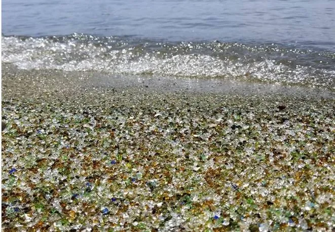 Sau nhiều thập kỷ, những con sóng vỗ bờ đã đập vỡ những chai lọ thủy tinh, cũng như mài nhẵn nó trở thành những viên đá cuội nhiều màu sắc tuyệt đẹp. Giờ đây, bãi rác năm nào qua bàn tay của mẹ thiên nhiên đã trở thành một địa điểm nổi tiếng thu hút rất nhiều khách du lịch đến chiêm ngưỡng bãi đá thủy tinh lấp lánh sắc màu.