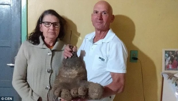 Củ khoai tây độc đáo này được phát hiện ở vườn khoai tây của vợ chồng ông bà Marli và Paulo Ciquinel sống ở thị trấn Meleiro, bang Santa Cantarina, phía nam Brazil.