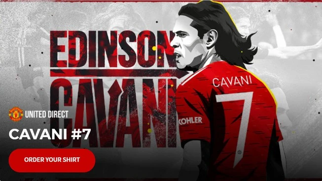 Áo đấu của Cavani được MU rao bán với giá từ 79,96 đến 99,95 bảng Anh. ẢNH: MAN UTD