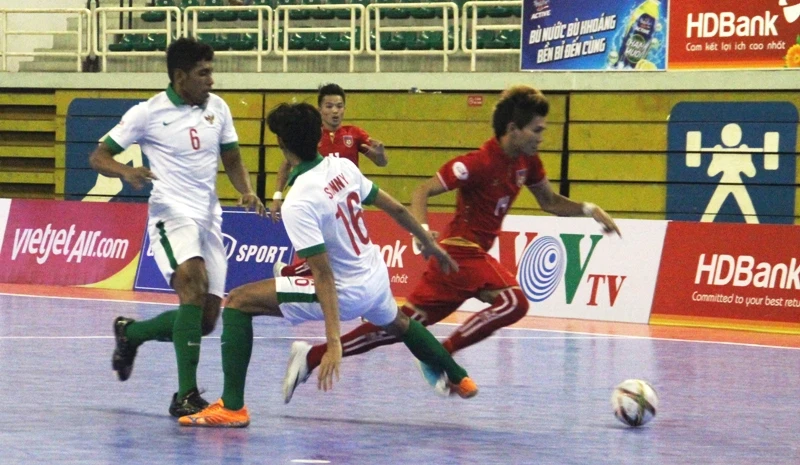 Giải vô địch Futsal Đông Nam Á đã xác định được bốn suất vào bán kết, bảng A gồm Việt Nam và Myanmar, còn bảng B là Thái Lan và Malaysia. Ở lượt đấu ngày hôm qua, Myanmar đánh bại Indonesia 3-2, còn Việt Nam “dội mưa gôn” vào lưới Brunei 18 bàn.