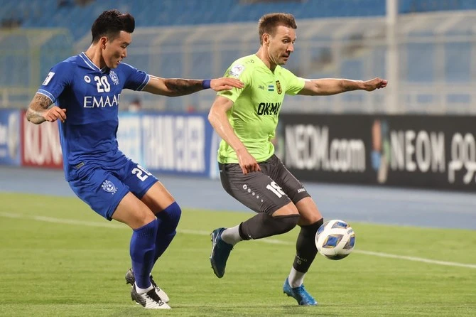 Jang Hyun-soo (xanh) trong màu áo Al Hilal đối đầu với Pohangsleeres. Ảnh: A.N