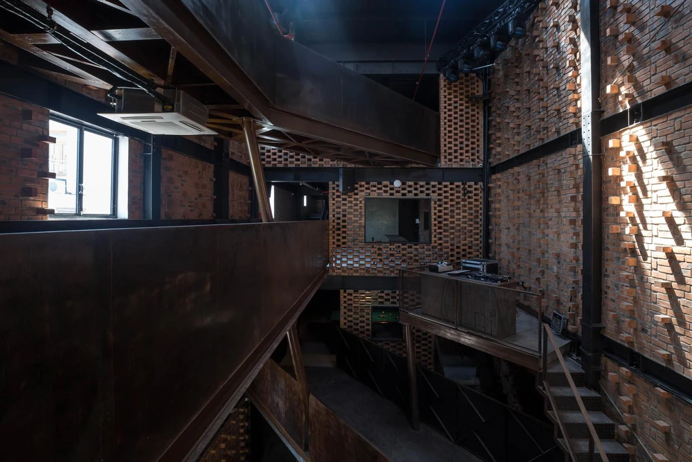 Không gian nội thất bên trong với những tổ hợp thép gỉ, bê tông và gạch mang đến sự thô mộc. |