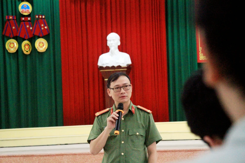 Trung tá Đào Trung Hiếu - chuyên gia tội phạm học, Bộ Công an tại buổi tập huấn.