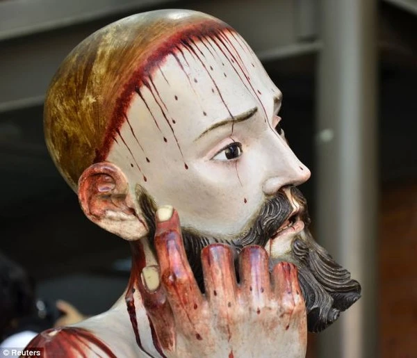 Bức tượng Chúa Giê-su gây chú ý bởi những chiếc răng thật bên trong.