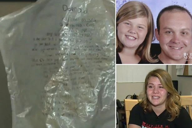 Ashlynn và cha của mình cách đây 5 năm (ảnh trên) và Ashlynn sau khi nhận được phản hồi của bức thư - Ảnh: Mirror