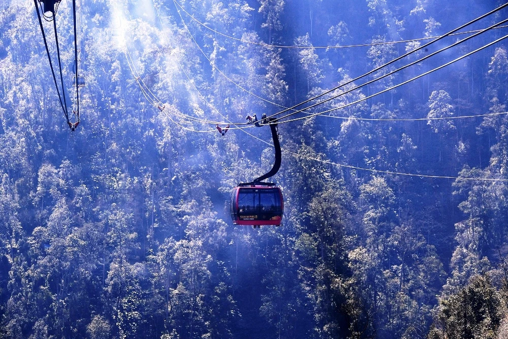 Từ ga đi cáp treo Fansipan, bạn bước lên cabin để lướt qua những vạt rừng đang bùng nở các chùm hoa đỗ quyên đầu mùa để thấy tâm hồn nhẹ bẫng trong hành trình hành hương bái Phật