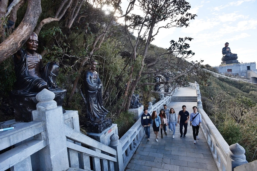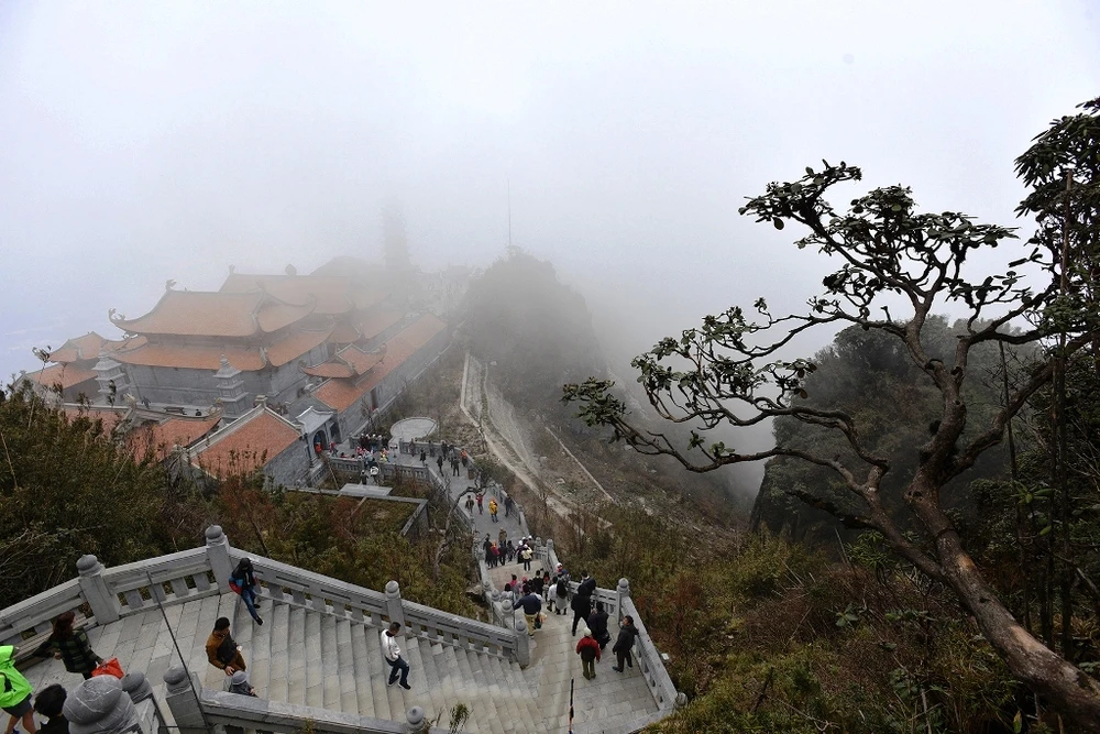 Nơi đỉnh thiêng Fansipan, các tăng ni Phật tử và khách bộ hành bước qua từng bậc đá, hoan hỉ tới “Cổng trời” để đi vào một hành trình thưởng ngoạn khó quên.