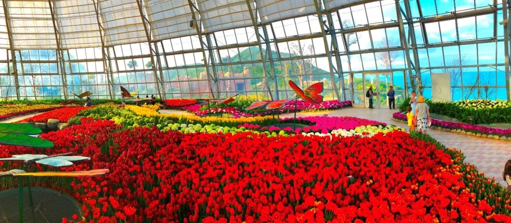 Lễ hội hoa tulip diễn ra tại nhà ôn đới - một trong năm nhà kính và ba khu vườn mở ngoài trời có diện tích hơn 35.000 m2 tọa lạc tại đồi vạn hoa. Đây thực sự là thế giới kỳ hoa dị thảo từ khắp các vùng đất trên thế giới. Cùng với hàng trăm ngàn đóa uất kim hương, Tết này Vinpearl Nha Trang còn rực rỡ với 10.000 cây hoa hồng cổ và hồng châu Âu độc đáo; 400 loài xương rồng cùng hơn 200 loại cây mọng nước; 100 loài hoa trong nhà kính và khu vườn Nhật tĩnh tại với tùng La Hán, sanh, bách, bonsai… sẵn sàng mang không khí xuân tới mọi người.