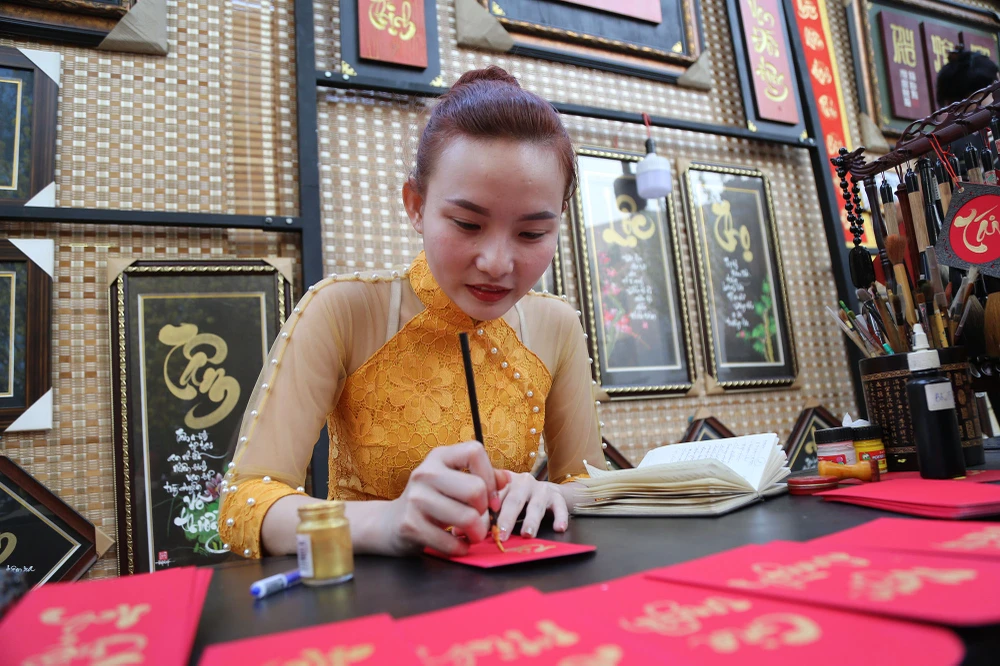 Phố ông đồ đặc trưng ở Nhà văn hóa Thanh niên mỗi mùa tết đến.