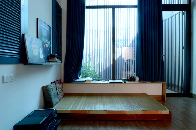 Với phong cách thiết kế đơn giản nhưng vô cùng tinh tế, kiến trúc sư Nguyễn Hiếu đã đáp ứng nhu cầu của một gia đình nhỏ. Với hai phòng ngủ rộng rãi, không gian phòng khách, bếp, các hoạt động chung (kết hợp với trẻ nhỏ) và không gian xanh ở khắp mọi nơi dù diện tích xây dựng chỉ 70 m2.