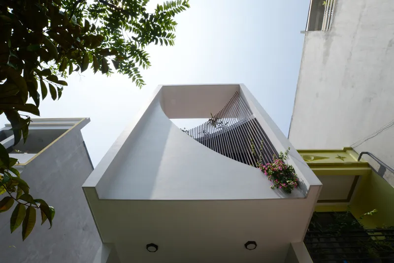 Điểm nhấn của mặt tiền là những đường cong trên bức tường màu trắng.