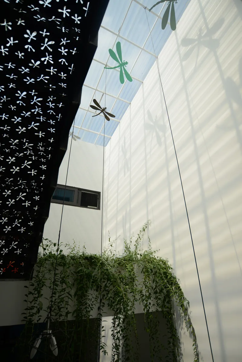 Ngước mắt nhìn qua giếng trời sẽ thấy những cánh chuồn chuồn lơ lửng trong không trung.