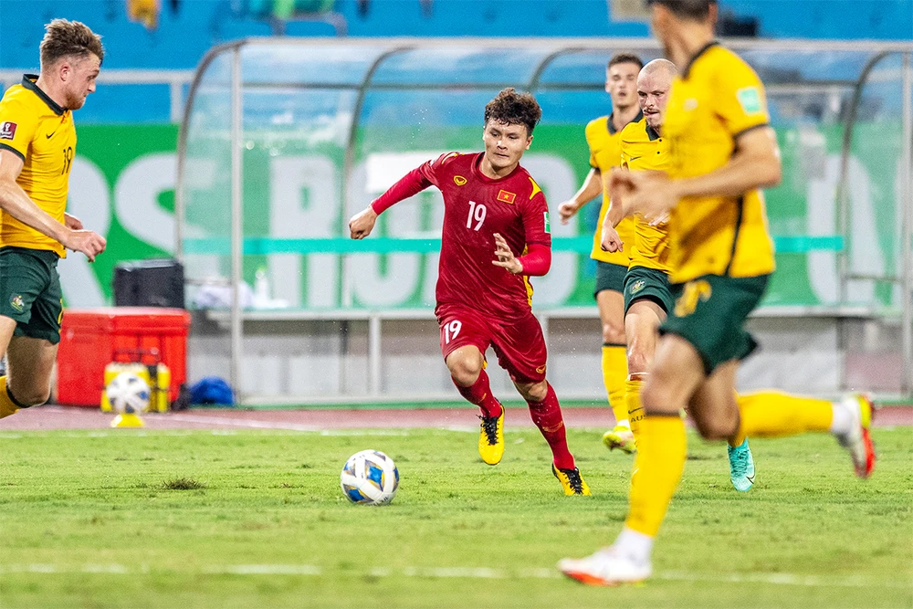 Trong khi phía Úc châm biếm nói sân Mỹ Đình như “bãi cỏ cho bò ăn” thì giới chuyên môn trong nước tiếc vì nếu mặt sân Mỹ Đình tốt thì có thể cú sút của Quang Hải đã không lên trời. Ảnh: HẢI THỊNH