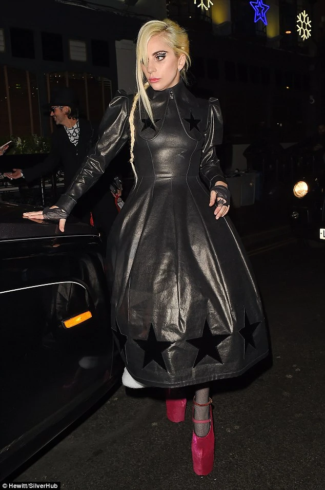 Cô nàng diện một chiếc váy chữ A bằng da màu đen. Thoạt nhìn cứ nghĩ nữ ca sĩ 30 tuổi đang mặc một bao rác bùng nhùng xuống phố London tối qua.